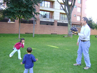 Luke has been dying to play a little wiffle ball (be brought a bat and couple balls) and the weather was perfect for it. I pitched, Luke hit and the ninos played outfield shagging balls. I think everyone had a pretty good time. I can also see that several lessons are going to be needed to teach Andres and Maria how to throw.